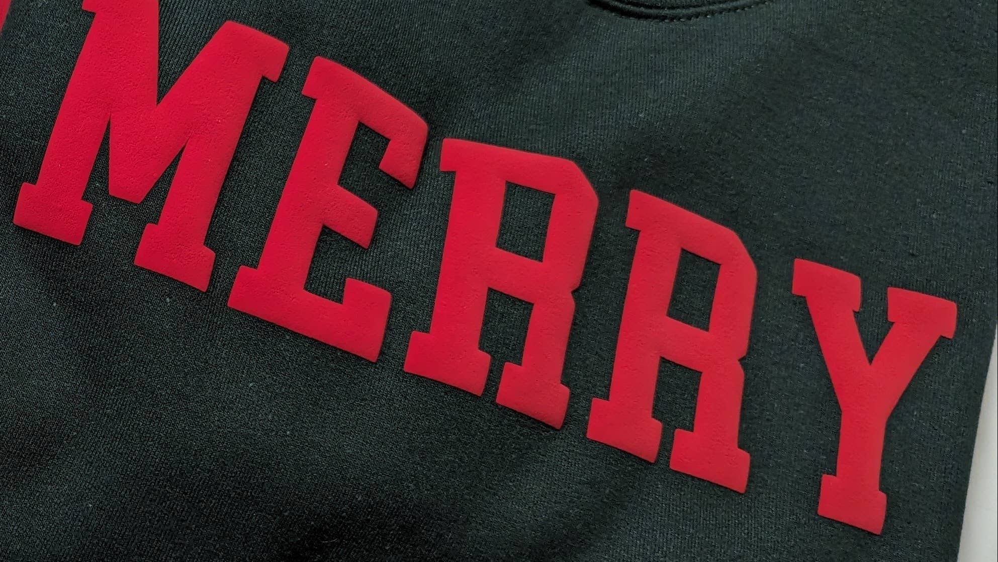 MERRY Crewneck Sweater with Puff Accent: Forest Green