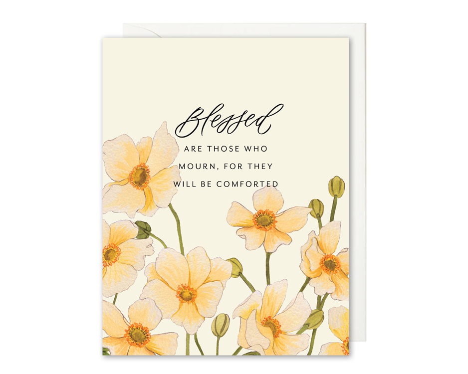 “Blessed are those who mourn, for they will be comforted” - Matthew 5:4 This Christian sympathy card offers hope and comfort in times of sorrow. The Bible verse was carefully chosen to remind those hurting that they are not alone. More than a sympathy card, it’s a way to walk alongside others through every season of life. Selah Paper aims to create products used to uplift others, whether it’s to celebrate a milestone or bring comfort during a dark time. All lettering and artwork are originals by Sarah. We are a proud family-run, women-owned, Canadian business located in Calgary, Alberta. Details * Blank inside * A2 size, 4.25" x 5.5" * Includes a matching envelope * Printed on white cover paper * Made in Canada