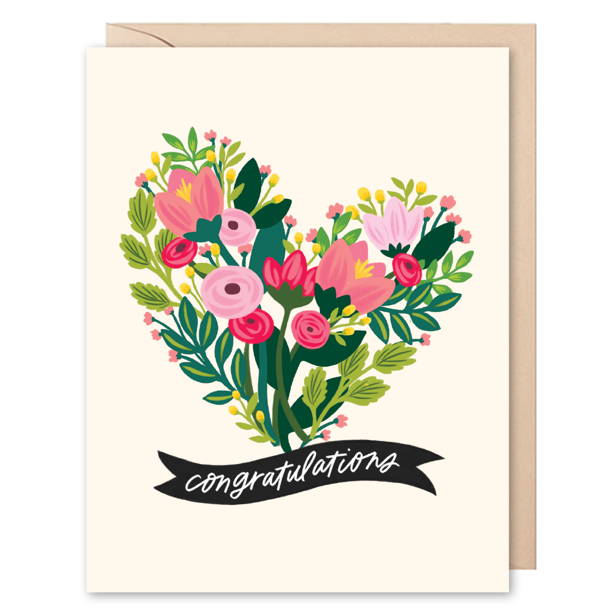 Celebrate with the most romantic floral heart paired with elegant script—perfect for sending heartfelt congratulations on any special occasion.
