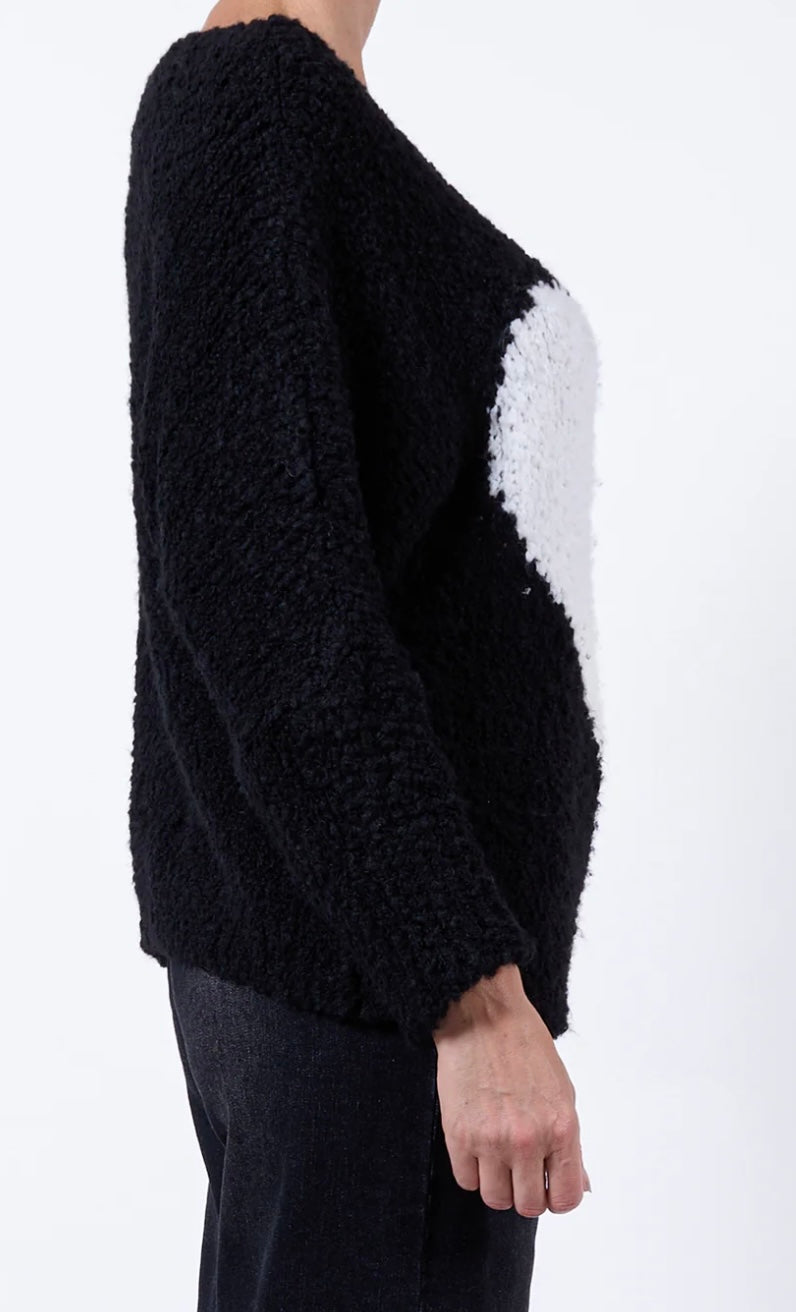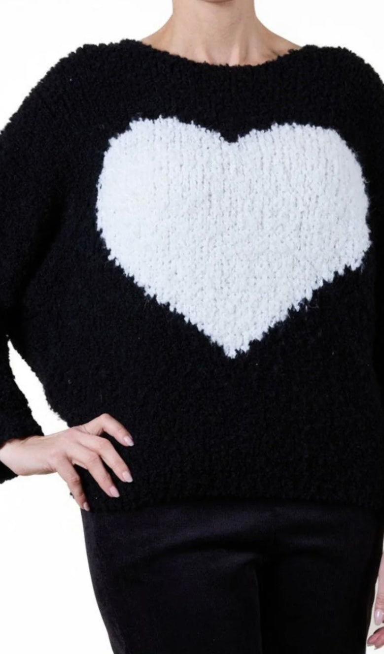 Black Scoop Neck Big Heart Chenille sweater I Angela Mara