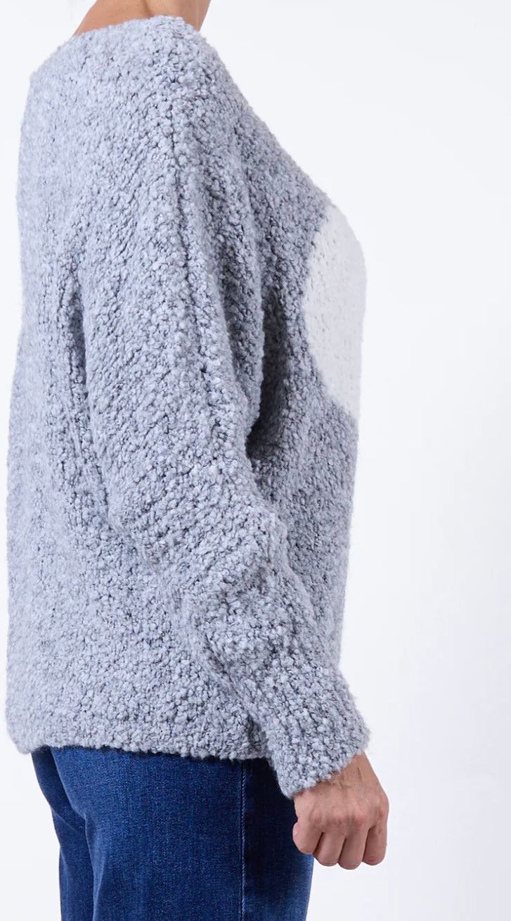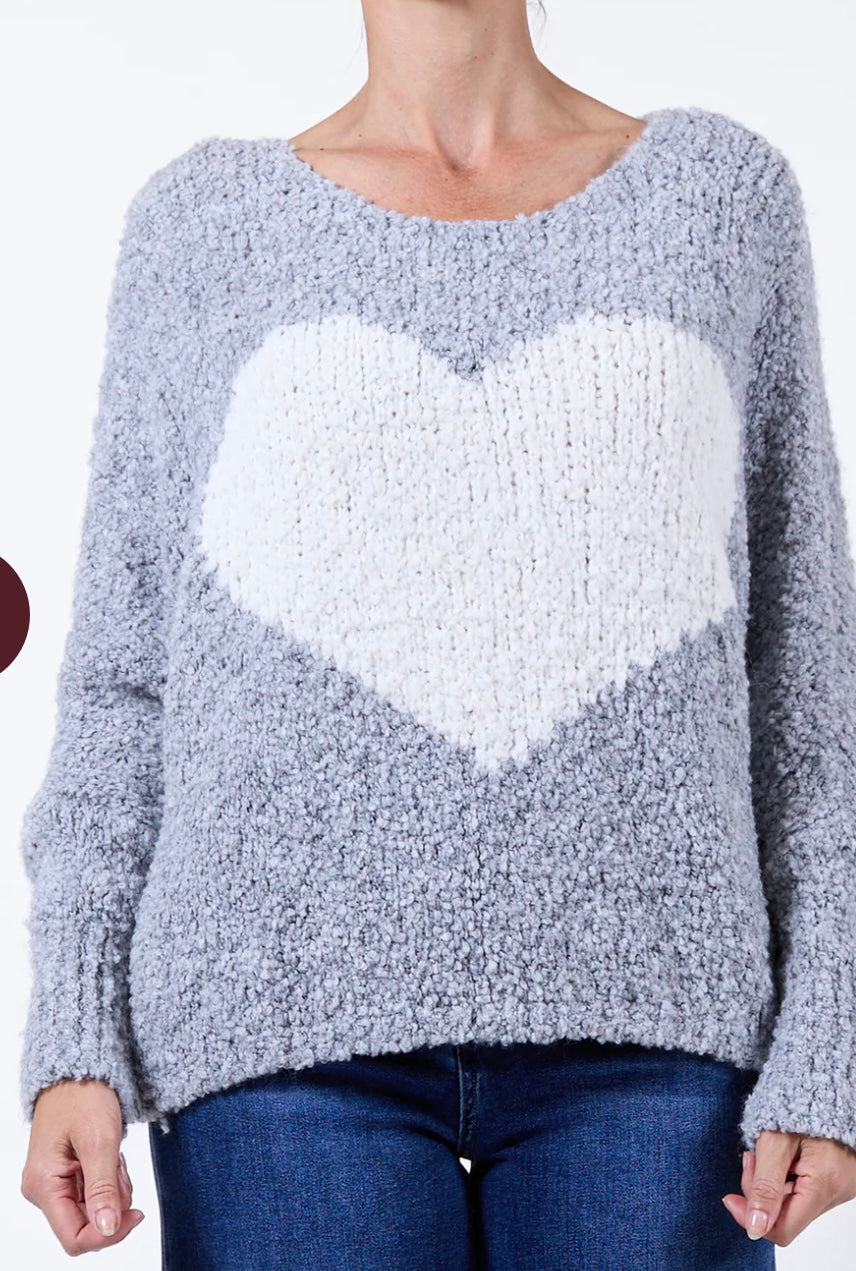 Grey Scoop Neck Big Heart Chenille sweater