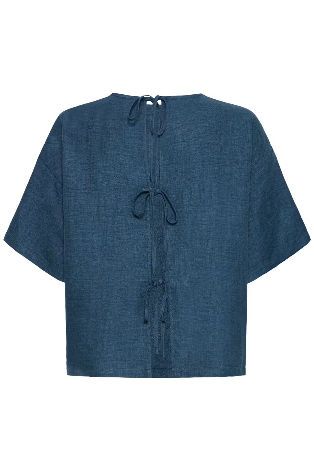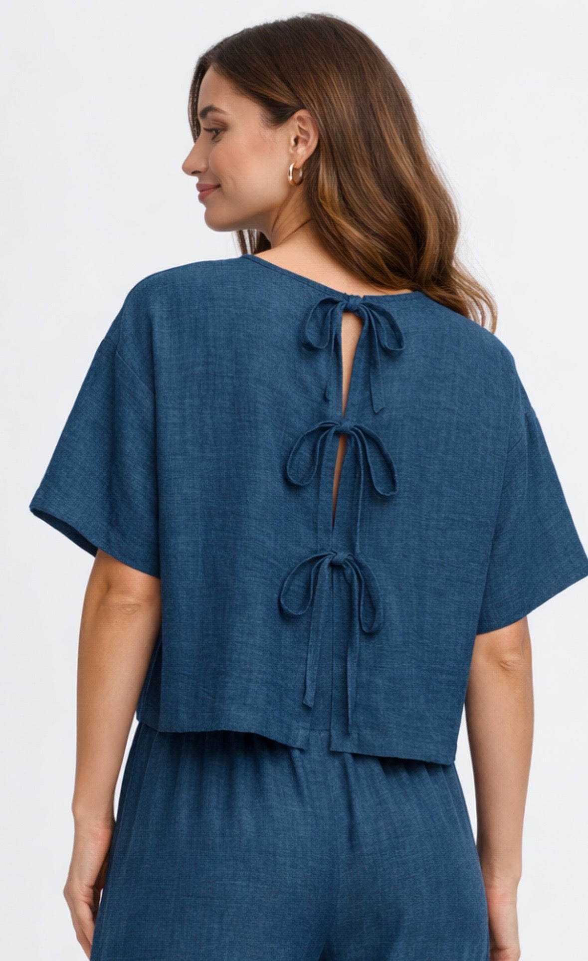 Effortlessly modern and easy to wear, this boxy top is crafted from a soft woven fabric with subtle texture for added dimension. Designed with a wide silhouette, it features a classic round neckline, relaxed drop shoulders, and short, wide sleeves that enhance its laid-back feel. The clean lines and contemporary shape make it a versatile staple—perfect for pairing with coordinating bottoms or styling on its own for a refined yet relaxed look.